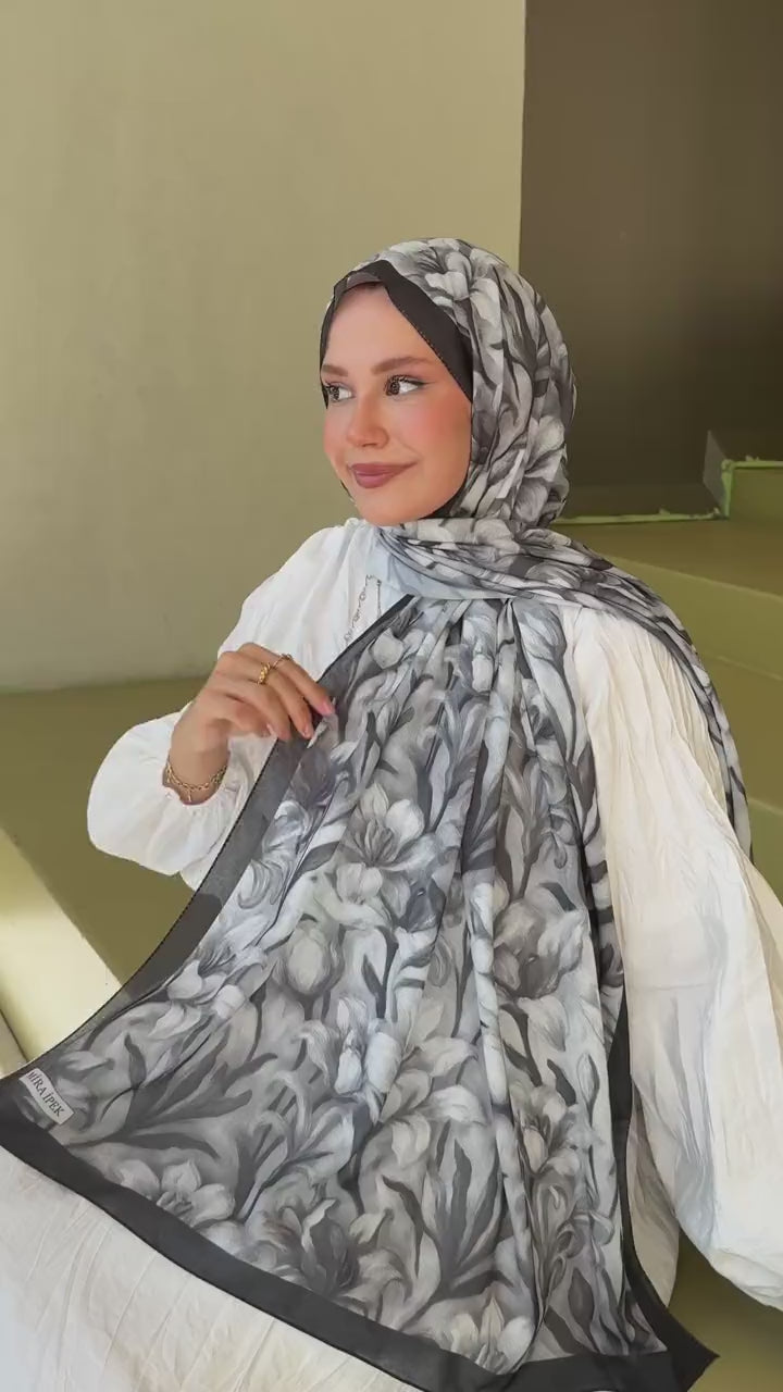 Fransız İpeği Desenli Şal Dökümlü Siyah Beyaz